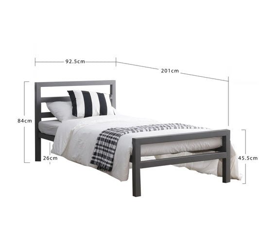 Time Living City Block 3ft Single Grey Metal Bed Frame