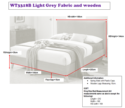 Artisan 5ft Kingsize Light Grey Fabric & Wooden Bed