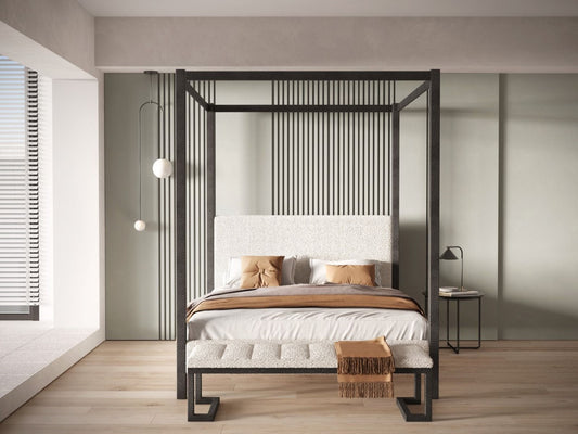 Flair Furnishings Four Poster 4ft6 Double Boucle Fabric Metal Bed Frame