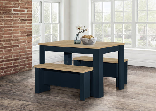 Birlea Highgate Blue And Oak Dining Table & Bench Set