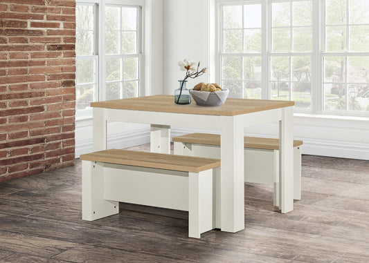 Birlea Highgate Cream And Oak Dining Table & Bench Set