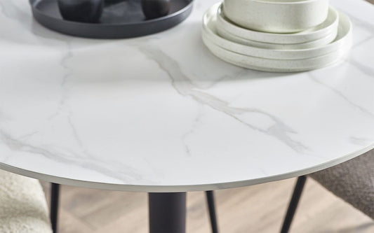 Julian Bowen Holland White Marble Round Pedestal Dining Table