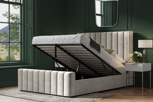 Emporia Kilworth Double Light Grey Velvet Ottoman Bed Frame