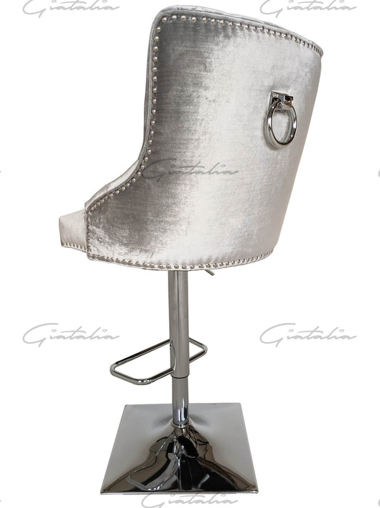 Giatalia Knightsbridge Shimmer Grey French Velvet Barstool Plain Back & Round Knocker