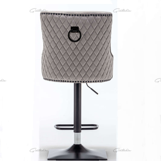 Giatalia Cambridge French Velvet Light Grey Black Metal Knocker Back Barstool with Black Base
