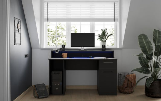 Flair Power Z Black Computer Gaming Desk With Colour Changing Led Lights