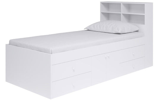Kidsaw White Multi Drawer 3ft Single Cabin Bed with Bookcase Headboard