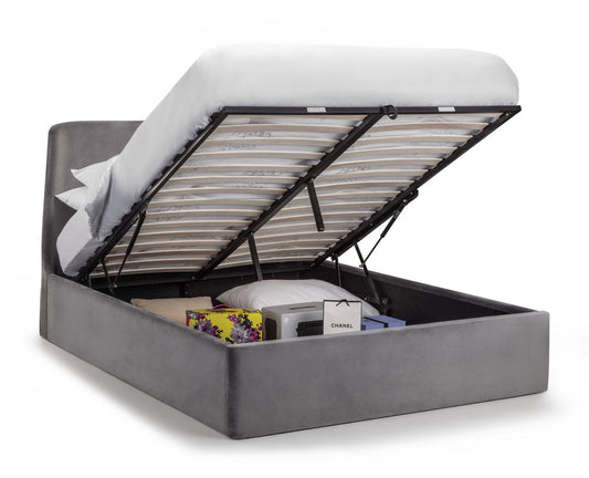 Julian Bowen Frida 5ft Kingsize Grey Velvet Storage Ottoman Bed
