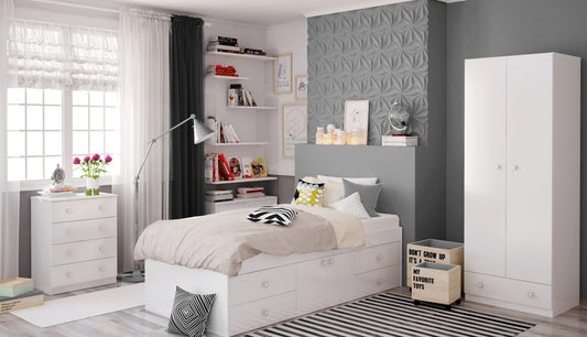 Kidsaw White Multi Drawer 3ft Single Cabin Bed with Bookcase Headboard