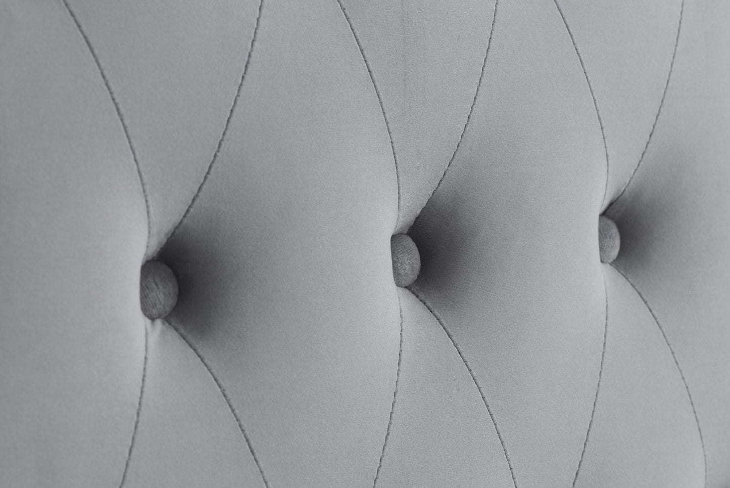 Make a grand style statement with this elegant contemporary bed frame. The Balmoral bed is upholstered in a luxurious grey velvet and features a wingback headboard with beautiful tufted detailing. Featuring a sprung slatted base to give natural bounce, this bed adjusts to where pressure is most exerted for greater comfort. Add a touch of elegance to any style bedroom with the Balmoral Bed. The maximum weight load for the 4"6 frame is 300 kg, the 5" frame is 400 kg, and the 6" frame is 450 kg. Please note: Birlea beds are only suitable for a UK standard size mattress and the recommended maximum mattress height is 3.5 cm.