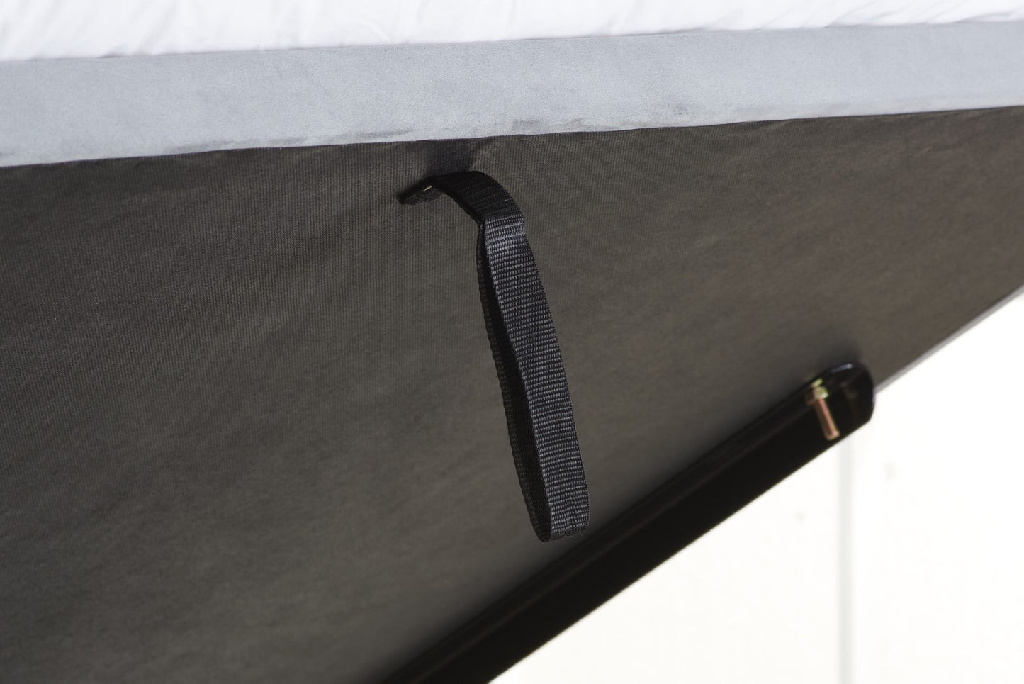 This is both a comfortable and stylish bed. Featuring fabric upholstery, tall, padded buttoned head end and wooden feet, it also has a low foot end which gives more space in smaller rooms. Finished in grey fabric, the Cologne has a lifting, gas strut assist, solid platform base for your mattress to sit on, up to a maximum weight of 65kg. Lots of style and lots of storage space.