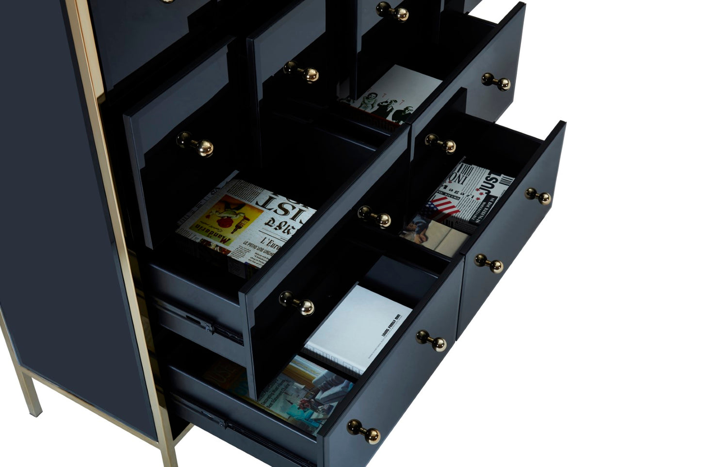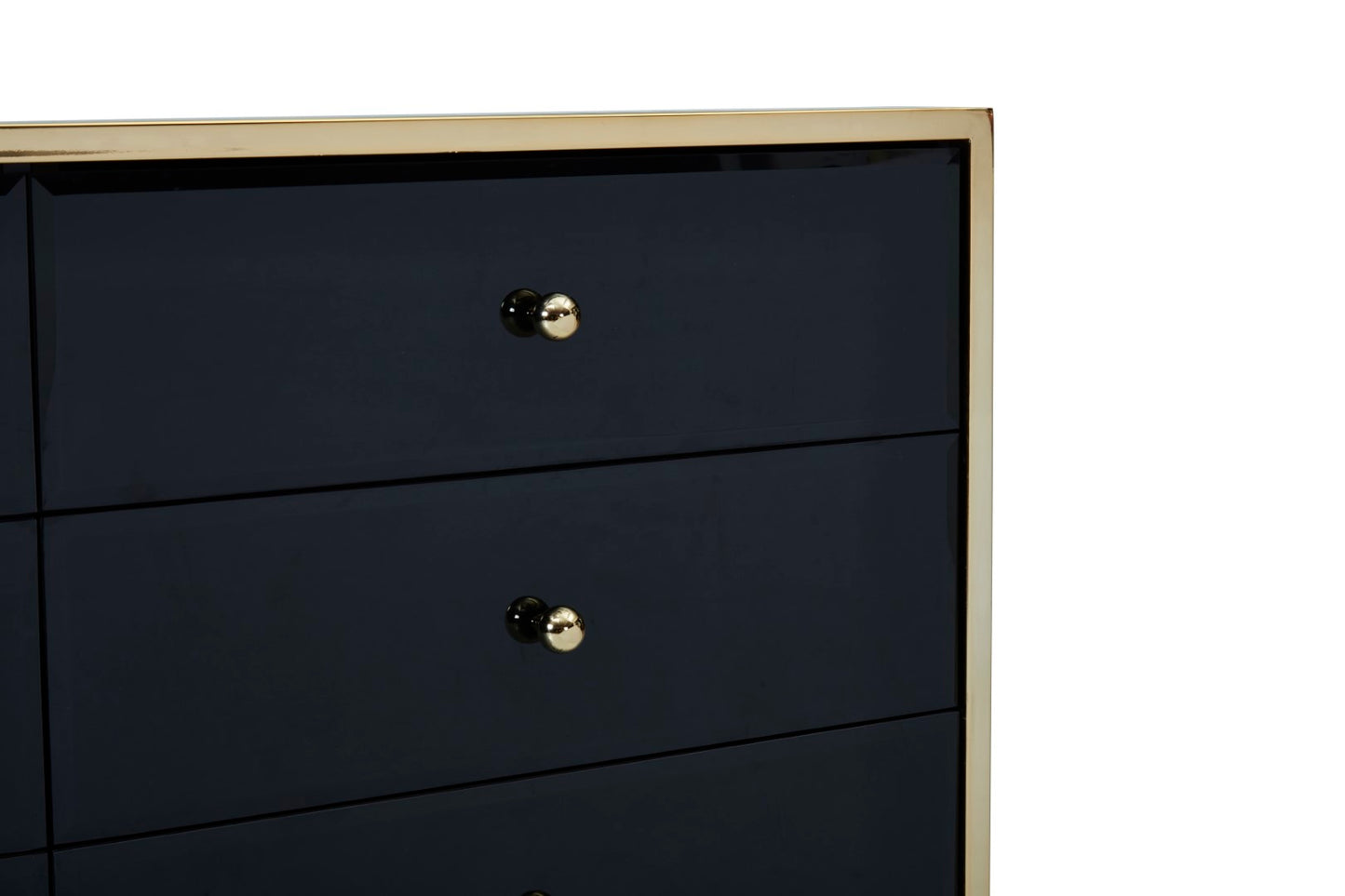 Our Fenwick range exudes glamour, charm and luxury. At home in any classic room, this stunning design demands attention thanks to its bevelled glass black panels and stunning gold frame. The Fenwick 6 drawer chest features 6 spacious drawers providing plenty of storage space. This range is certainly eye catching and guaranteed to be suitable for most stores, showroom and online stores. Wipe with dry cloth.