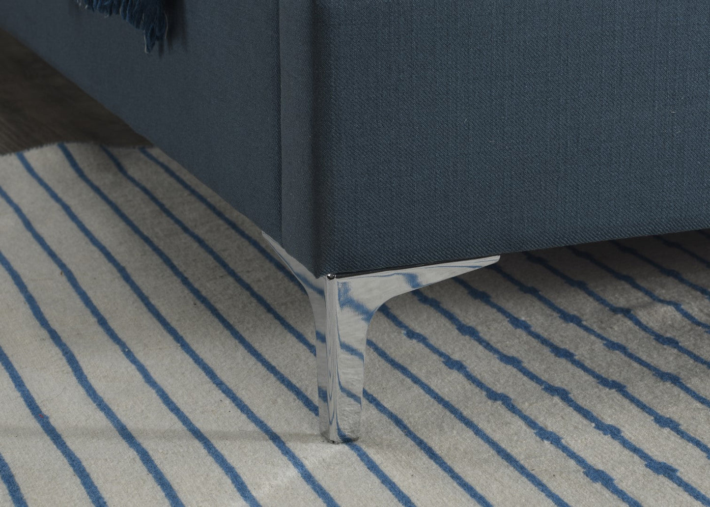 Modern & stylish the Finn bed is sure to impress. The Finn fabric bed is upholstered in a stunning steel blue & charcoal fabric and features an overhanging headboard. The Finn features stunning silver feet making it a real statement piece. Featuring a sprung slatted base to give natural bounce, this bed adjusts to where pressure is most exerted for greater comfort. The maximum weight load for the 4'6 frame is 300 kg, the 5' frame is 400 kg, and the 6' frame is 450 kg. Please note: Birlea beds are only suitable for a UK standard size mattress and the recommended maximum mattress height is 305mm.