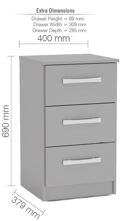 Birlea Lynx Grey 3 Drawer Bedside