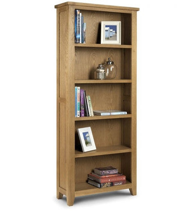 The Astoria Tall Book Case offers great versatility, crafted from White Oak and Oak Veneers with a durable waxed finish. Features 5 handy storage shelves perfect for storing your favourite reading materials and holds up to an A4 Box File . A timeless design with chunky tops that complements contemporary and traditional interior styles equally well. With a range of coordinating furniture from the Julian Bowen Astoria range to create a warm, traditional feel in your home.