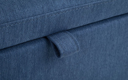 Perfectly proportioned to sit at the end of the bed, this contemporary Astrid blanket box is upholstered in a crisp blue linen fabric. This contemporary, Scandinavian design fits perfectly with a wide range of bedroom décor. The perfect storage for your cushions, linens, or duvets with the ease of soft close hinges.
