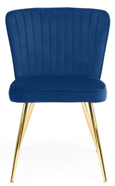 The Cannes chair would make a beautiful statement in your home. Smooth, high quality velvet combined with a scalloped back design and contrasting gold-coloured legs this chair provides comfort, as well as class. Available in grey or blue.