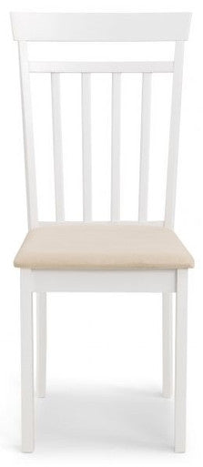 Coast White Wooden Dining Chair by Julian Bowen - A refined high-backed dining chair in an immaculate white lacquered finish. Its clean, crisp look fits seamlessly with both traditional and contemporary décor, while its gently shaped back and padded seat combine to offer exceptional comfort.