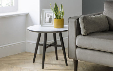 With cool, monochrome tones, the Firenze lamp table offers a contemporary, timeless design that adds charm and style to any room. Crafted from MDF and Powder Coated Steel, this sturdy round lamp table is topped with a white marble effect and black finished cross legs, adding an impressive centerpiece to your living space.