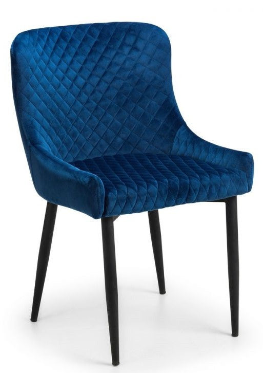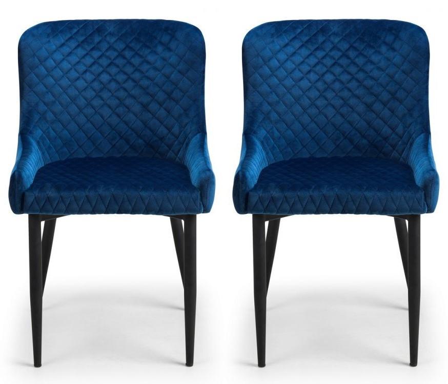 2 x Julian Bowen Luxe Blue Velvet Dining Chairs