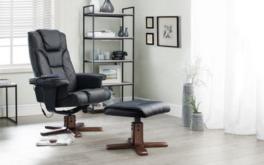The Malmo Reclining Swivel Chair and Stool, upholstered in a soft touch faux leather with a walnut colour laminated base is now available with an added 8 Point Massage Unit and Lumbar Heated Pad. This chairs offers the ultimate in complete sitting comfort and relaxation.