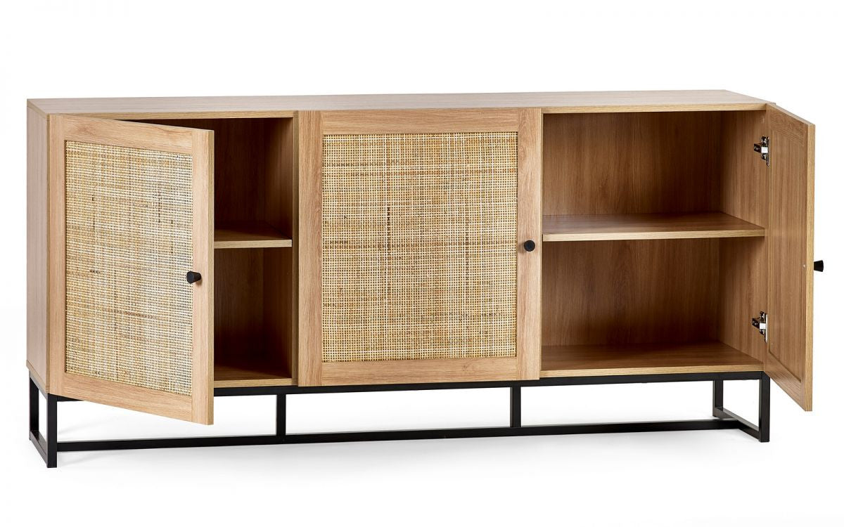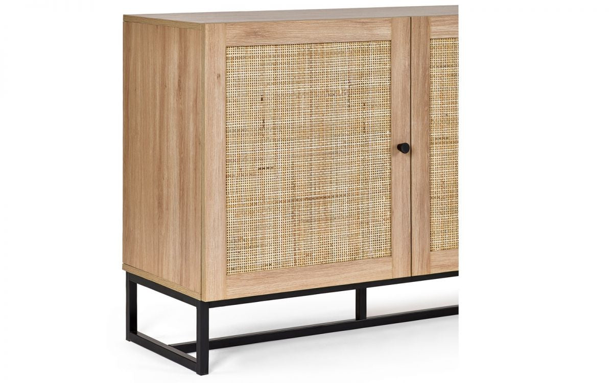 Fusing modern construction with retro design elements, the Padstow collection will exquisitely complement any styled home. The natural rattan fronts and industrial-style base collaborate perfectly to leave a warm yet chic aesthetic in your home. This range includes a bedside, 3 drawer chest, 6 drawer chest, wardrobe, coffee table, TV unit, sideboard, and tall bookcase. Also available in a black finish.