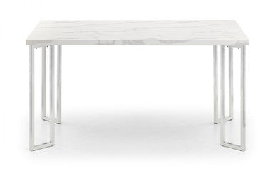 The Positano is crafed from a sleek marble effect top on a stainless steel frame. Featuring individual angled framed legs which give off a futeristic feel. It has a timeless Italian design that fits well with a wide range of decorative styles.