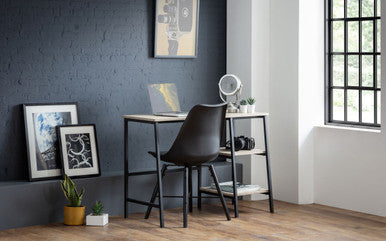 A cool, modern desk designed to add a contemporary touch to any living space. Its simple clean lines, delineated by a subtle, black coated metal frame are complemented perfectly by a warm, sonoma oak foil, to create a very stylish and sleek product. This desk features 2 shelves on the right hand side, suitable for stationary storage.