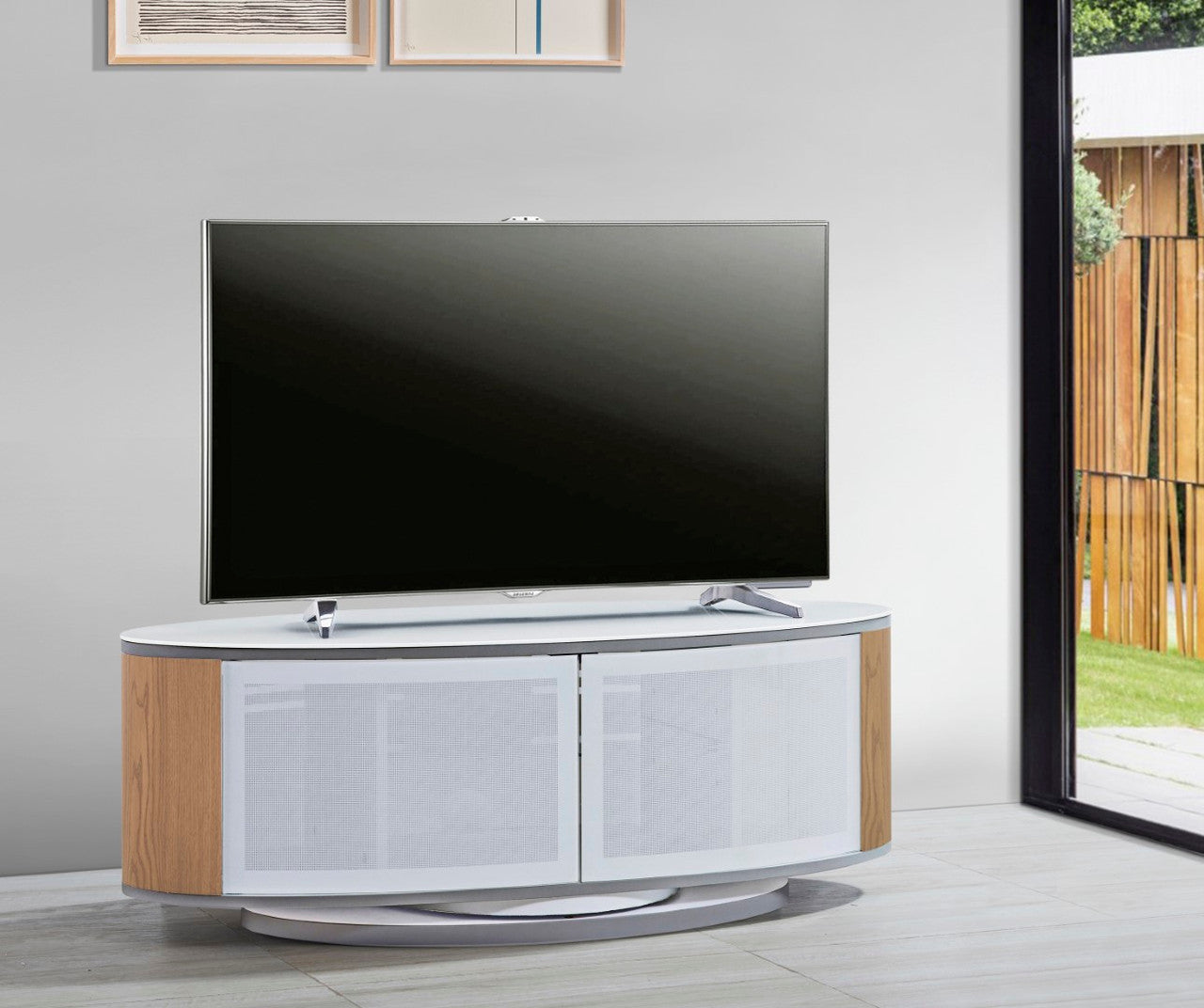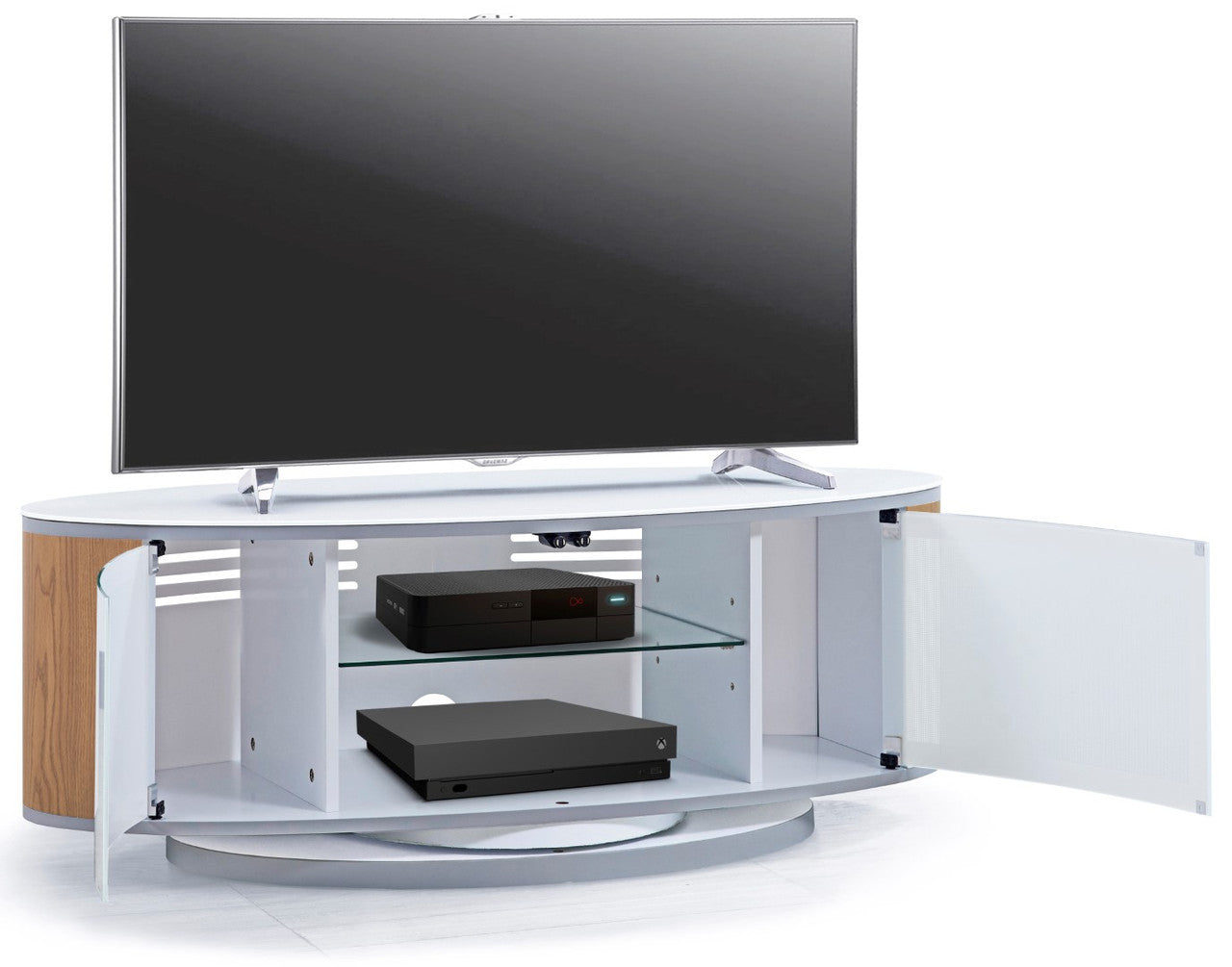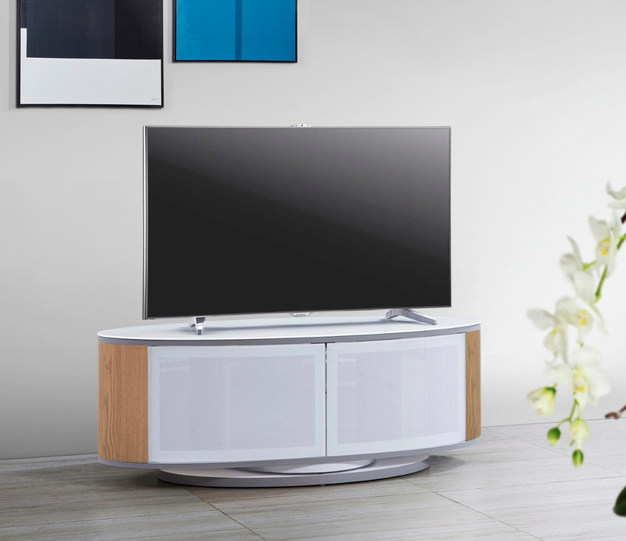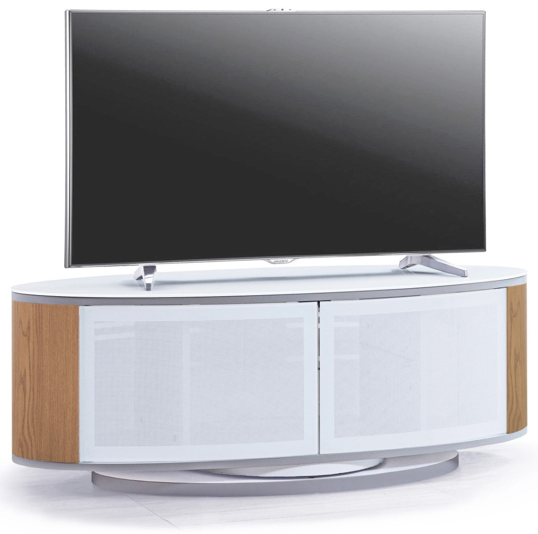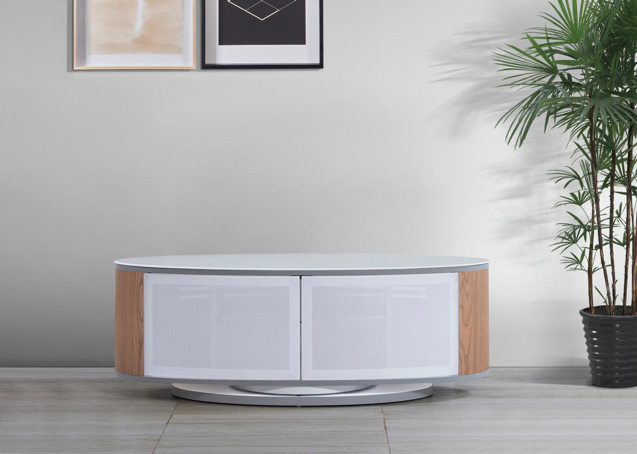 Luna High Gloss White/Oak Oval TV Cabinet For TVs Up To 50 Inches