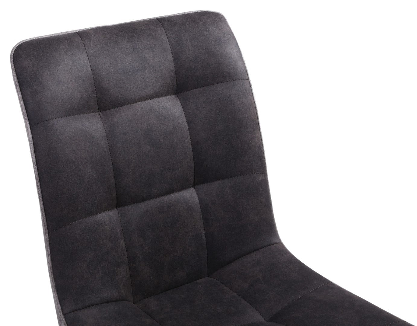 An invitingly curved modern twin tone suede effect dining chair. Padded seat. Feature zip on the seat back. Supplied with black rubberwood tapered x frame legs. Assembly required. Sold in boxes of 2.