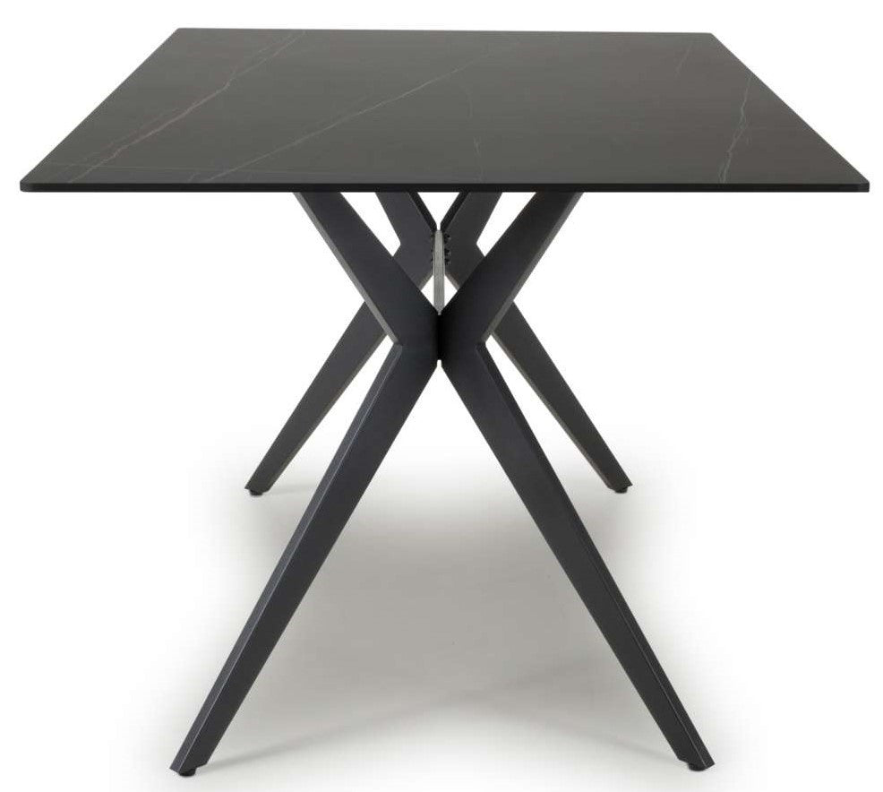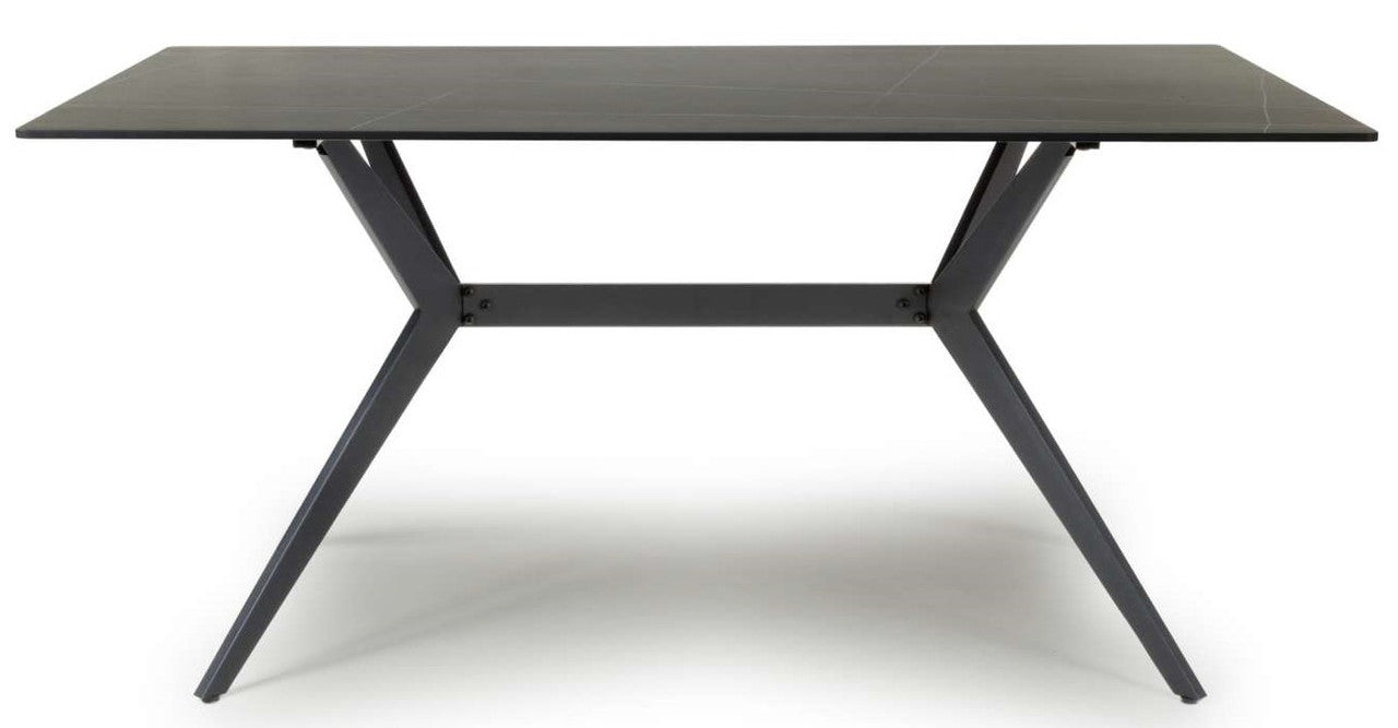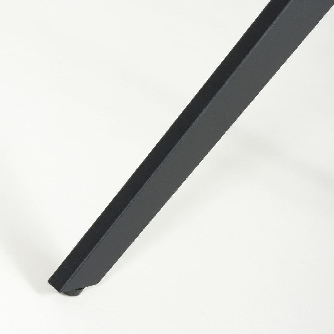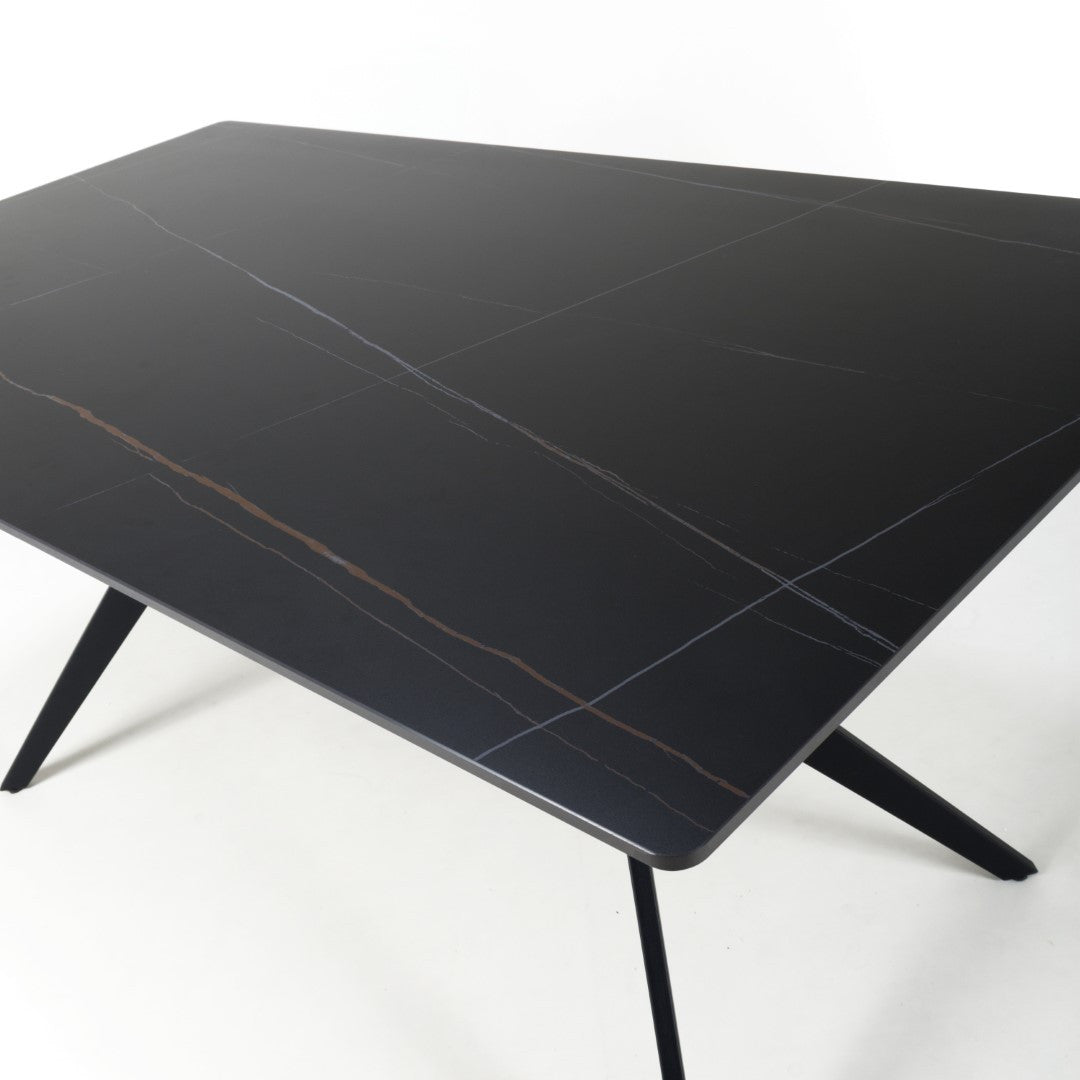 This trendsetting sintered stone dining table is set off by fashionable diagonal orange and white criss cross markings. The sturdy 12mm thick ceramic table top comes in an attractive reflective black finish. Completed by stylish black powder coated metal X-frame legs. Assembly required. Sold individually.